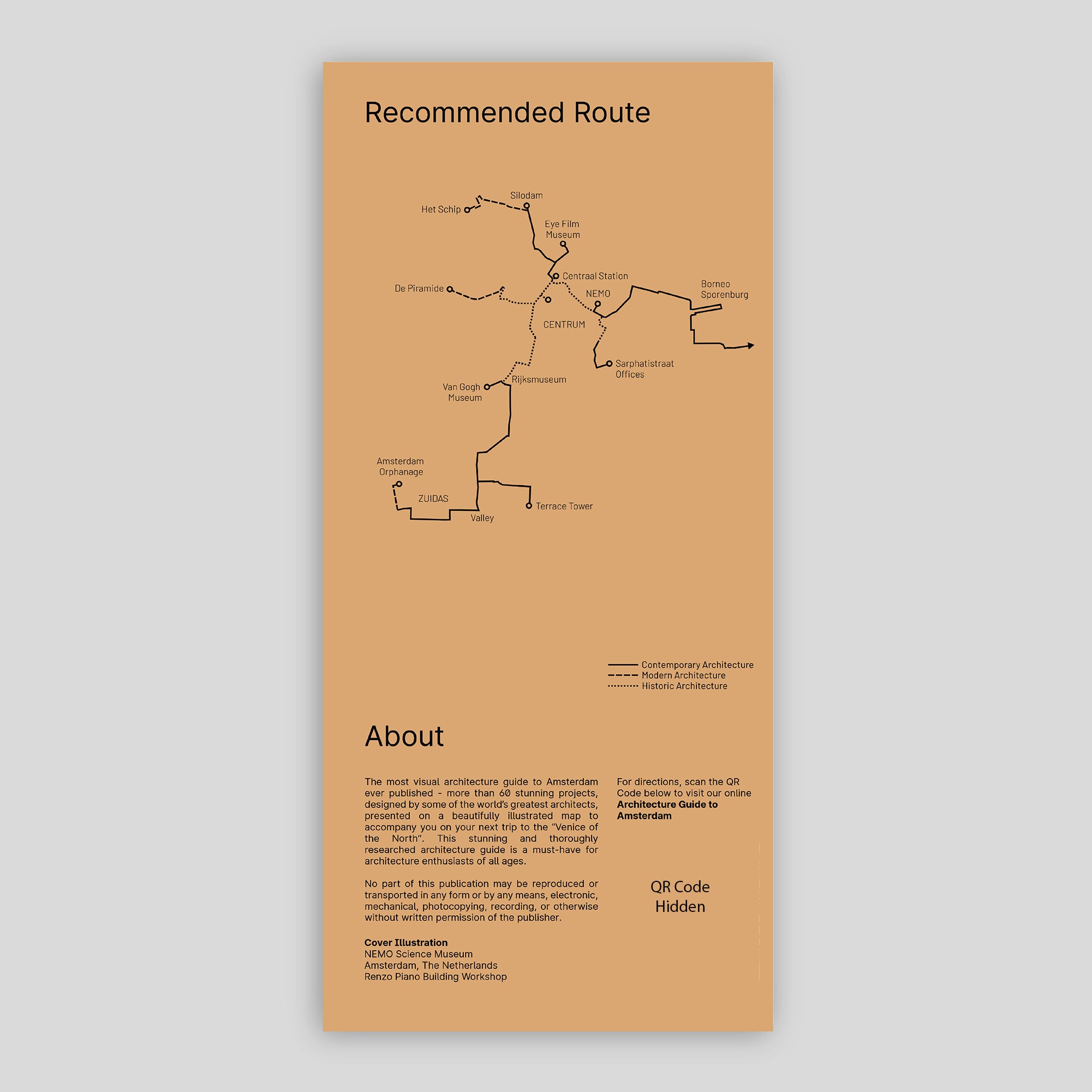 - A QR code on the back of the guide gives you access to a digital pin map with precise building locations and directions in Google Maps.
