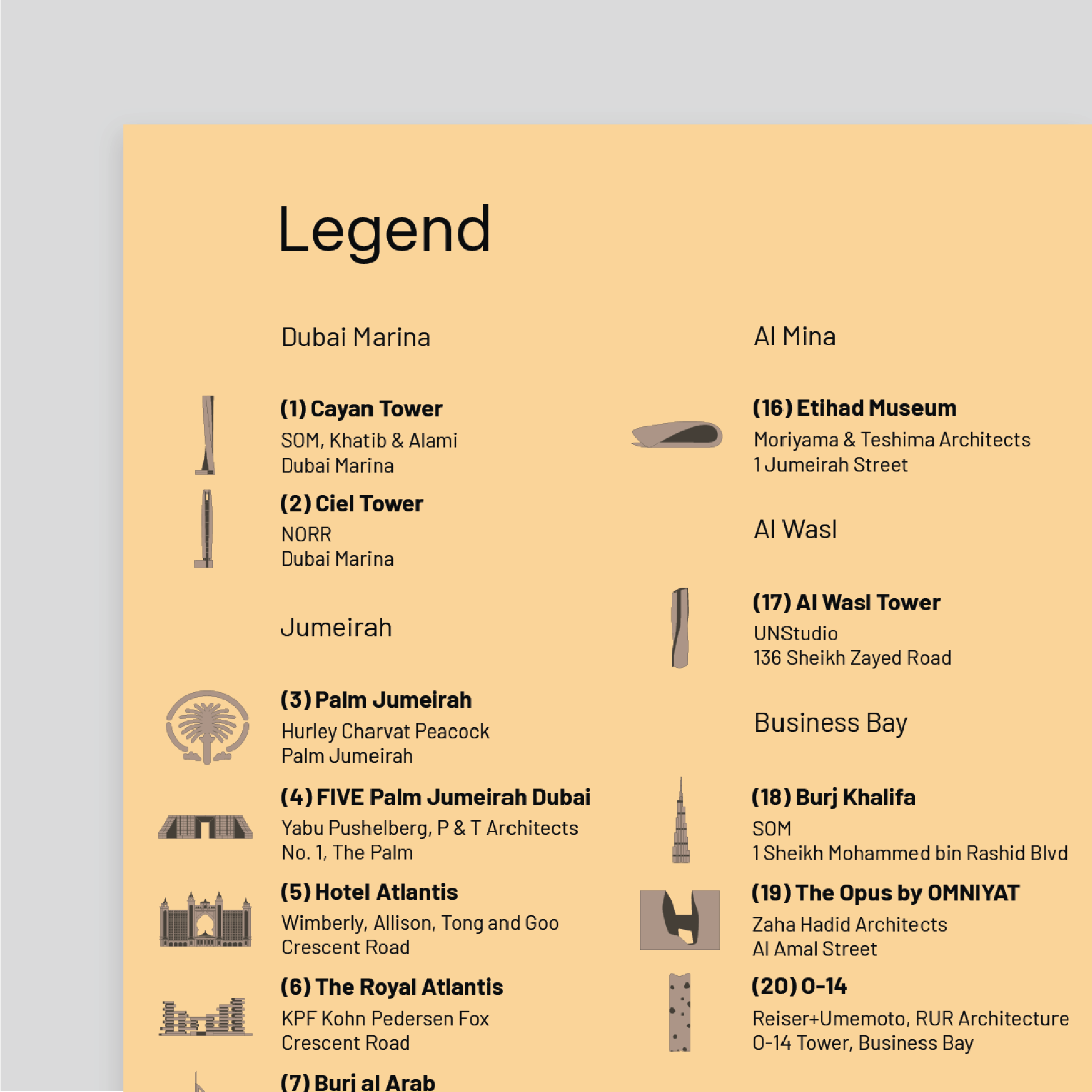 This two-sided folding map features over 60 illustrated building icons and includes traditional areas like the Al Fahidi Historical Neighbourhood. Visit the Burj Khalifa, the world's tallest building, and the Burj Al Arab; a truly iconic building inspired by a traditional Arabian sailing vessel. See contemporary projects by leading architects like Zaha Hadid, OMA, UNStudio, Norman Foster, and many more—perfect for travelers, culture lovers, and urban explorers alike.