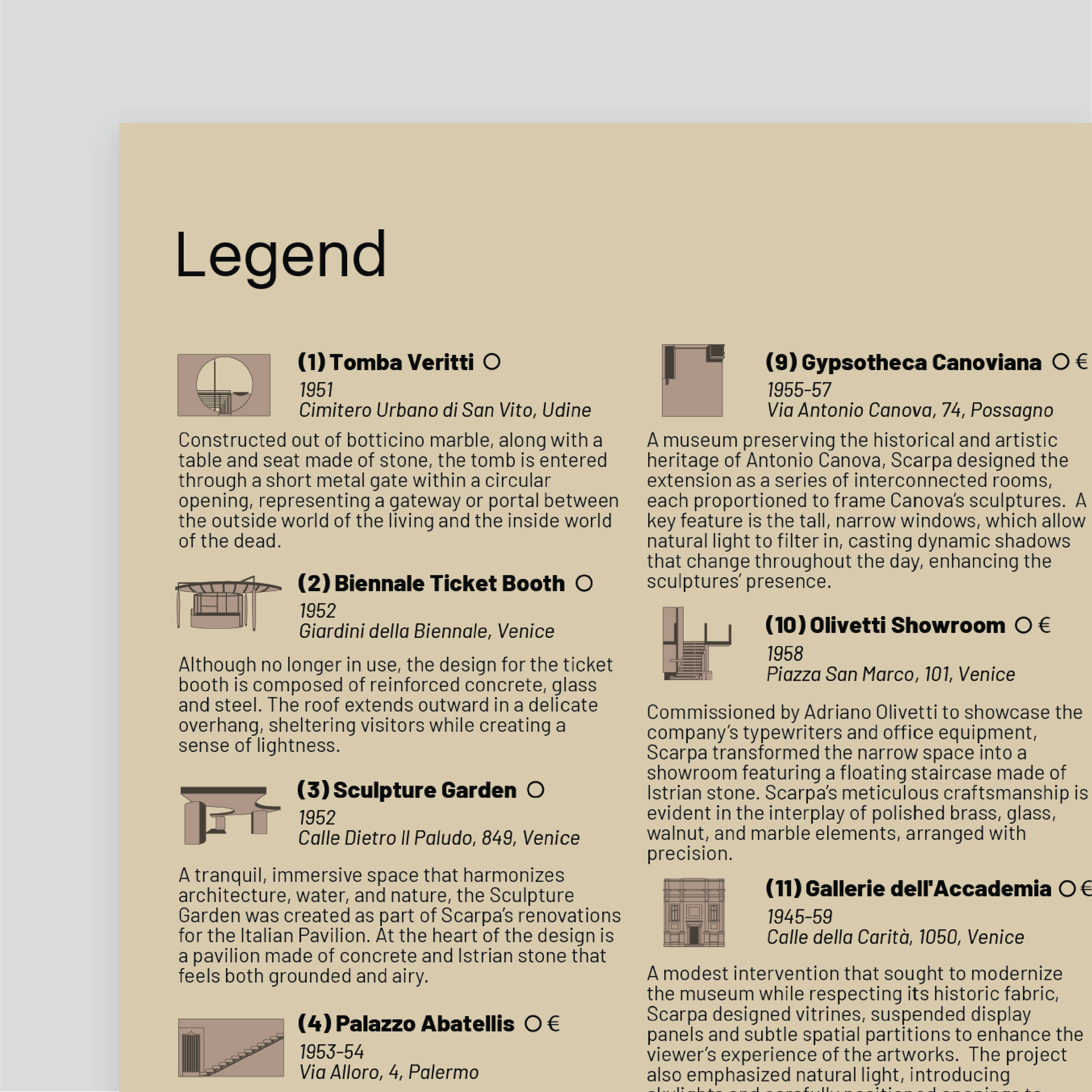 Explore the evocative architecture of Carlo Scarpa, whose work seamlessly blended modern design with history, craftsmanship, and Venetian culture. From Venice to the Veneto countryside, this guide introduces Scarpa’s meticulous attention to detail and sensitivity to place. Landmark projects such as the Museo di Castelvecchio in Verona and the Brion Cemetery reveal how Scarpa created profound dialogues between past and present, modernity and tradition.