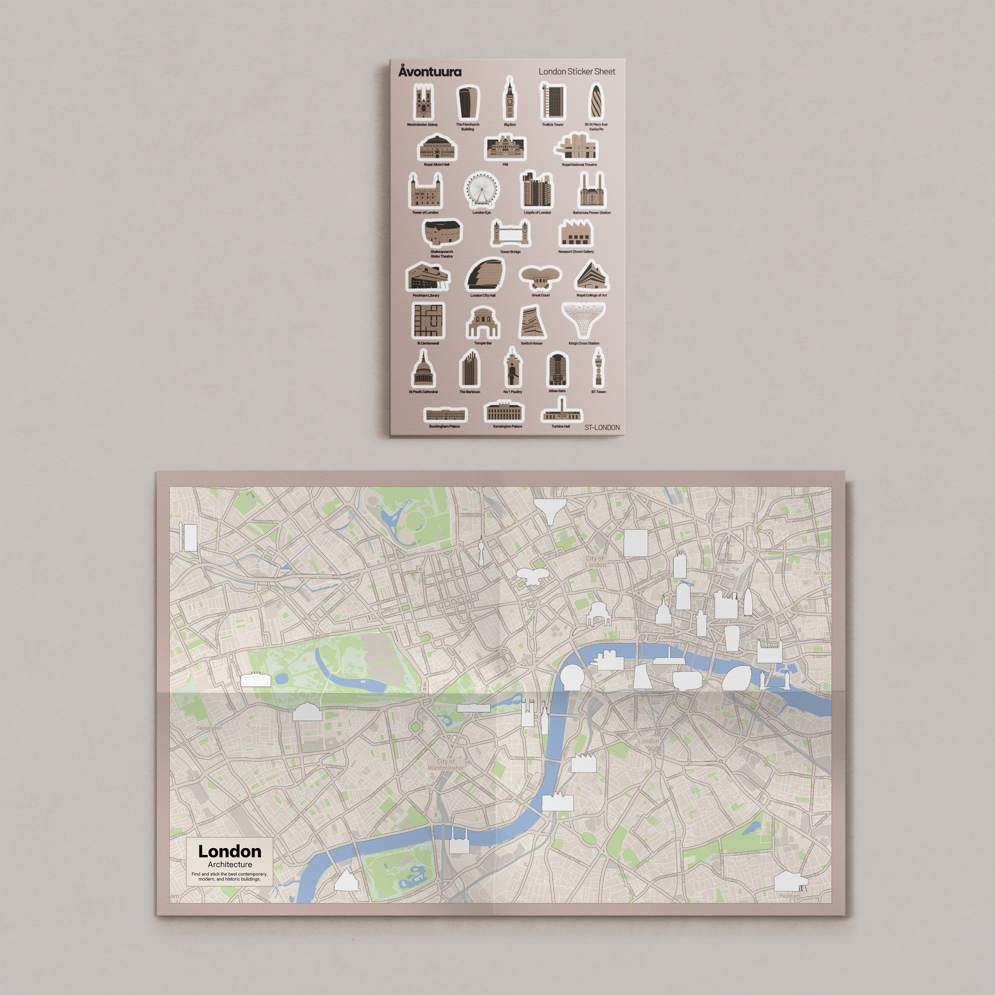 Featuring iconic landmarks like Big Ben and the London Eye, this sticker & map collection highlights London’s contemporary icons, historic monuments, and timeless architectural charm. Use the stickers to build your own architecture map of the city or enjoy them as creative decoration on notebooks, travel journals and laptops.