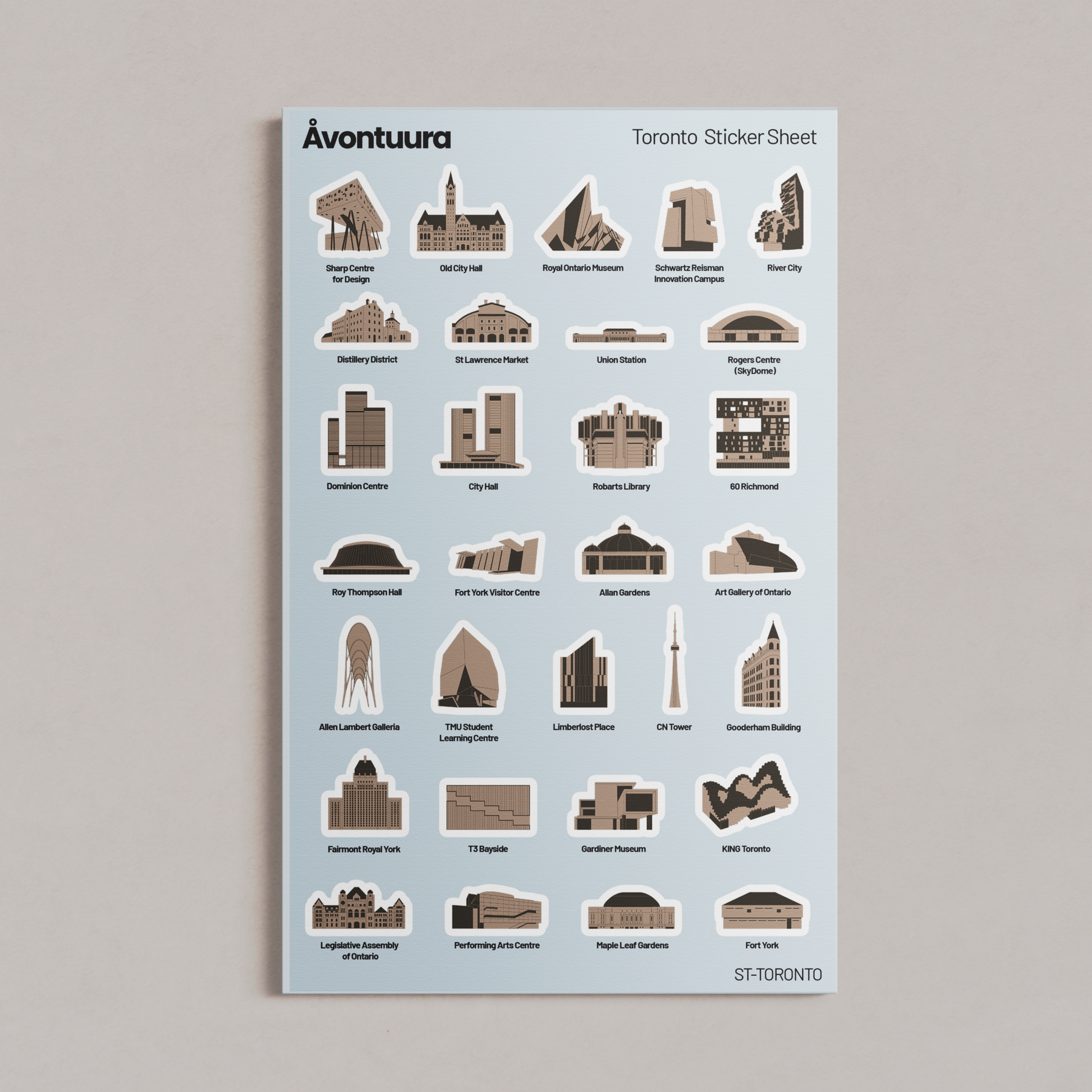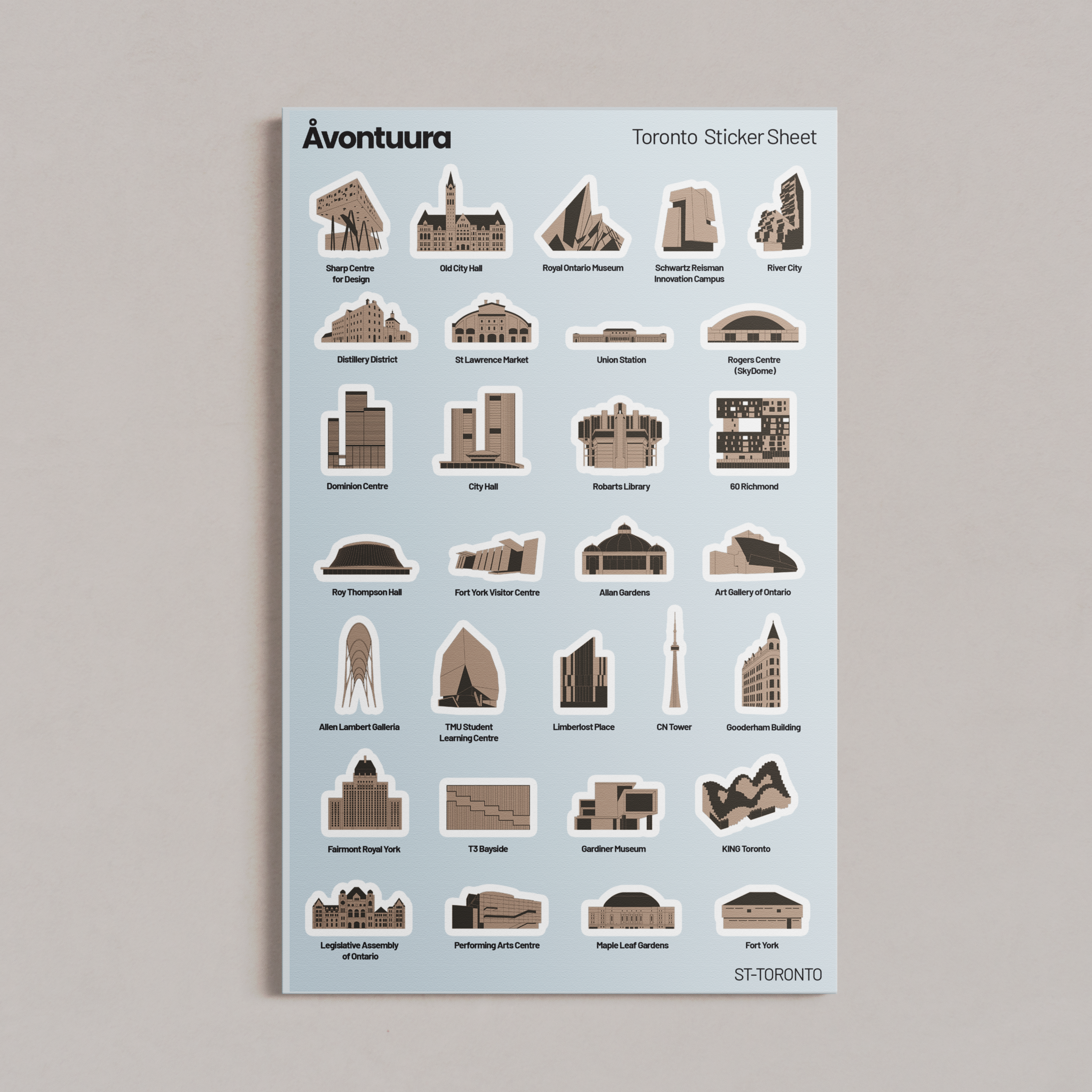 Explore Toronto’s dynamic skyline with this illustrated architecture sticker set — fun for both kids and adults.